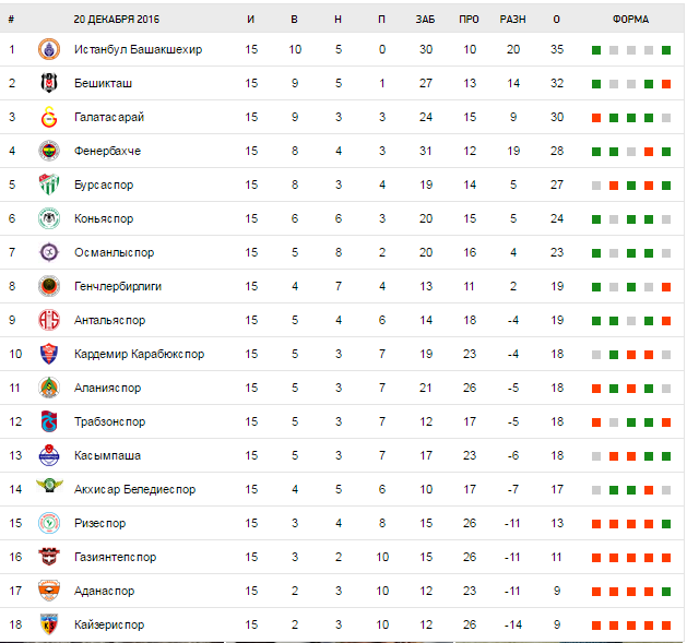 Двоевластие в турецком чемпионате продержалось недолго — всего один тур. После того, как Башакшехир позволил себе трижды кряду сыграть вничью, тем самым подпустив Черных Орлов (Бешикташ сравнялся по очкам с командой Авчи), в 15-м же туре Оранжево-синие свой матч выиграли (у Трабзонспора), а вот подопечные Гюнеша достаточно неожиданно оступились (Касымпаше).