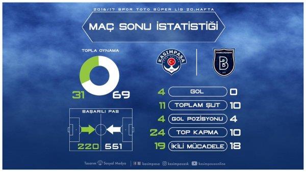 Вторая команда чемпионата Истанбул Башакшехир неожиданно крупно уступила среднячку Суперлиги Касымпаше. Несмотря на подавляющий перевес во владении мячом (30% — 70%), гости не смогли забить, пропустив четыре гола.