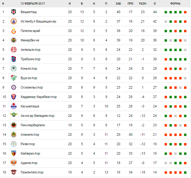 Турнирная таблица: