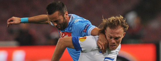 "Днепр с самого начала действовал не так решительно, как в домашнем матче. Хуанде Рамос сделал ставку на осторожную игру, команда закрылась в обороне, пытаясь не дать футболистам Наполи владеть мячом около штрафной. Однако Партенопеи начали давить с самого начала, вышли вперед уже на седьмой минуте - действия команды Маццарри предвещали разгром соперника.