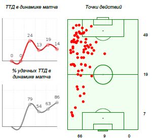 Скрин с усредненными позициями хозяев поля отчетливо показывает, что на правом фланге помимо номинально располагавшихся там Марлоса и Вильягры часто оказывался Торрес, туда же смещались и Шавьер, и формально игравший слева Соса, и нападающий Кристальдо. В итоге из 104-х атак Металлиста 41 была проведена именно через эту зону.