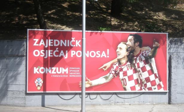С местными о персоне капитана хорватской сборной поговорить как-то не удалось: перед матчем их головы были забиты исключительно мыслями о Хайдуке, Днепре и группе Лиги Европы. Впрочем, дважды Дарио все-таки попадался на глаза. Первый раз — бигборд среднего размера, Срна и Лука Модрич в форме сборной Хорватии. Прочитав текст (см. фото), может показаться, что клетчатые звезды рекламируют средство от поноса, но нет — все гораздо тривиальней. Слово ponos по-хорватски означает гордость, а бигборд рассказывает, как главный спонсор сборной поносит или гордится (тут уже от языка зависит), сотрудничеством с первой командой страны.
