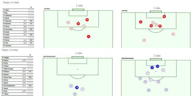 Несмотря на то, что общая статистика ударов у обеих команд в итоге оказалась одинаковой (по четырнадцать попыток), подопечные Мирона Маркевича свои атаки до завершения доводили заметно лучше. Во-первых, они чаще били в створ (семь против трех), а во-вторых, и что важнее, били они с более опасных позиций.