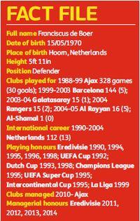 - Подписывая новое соглашение, я вообще не задумывался о возможной смене клуба. Более того, я хотел побить рекорд Шака Сварта по количеству проведенных матчей за амстердамский клуб (603 официальные встречи). И всего спустя пару дней после подписания мне позвонили из Барселоны. Звонок раздался посреди ночи, я крепко спал. На проводе был помощник главного тренера Тонни Брюинс Слот, который спросил, не заинтересован ли я в том, чтобы перебраться в Испанию. Тогда менеджером Барселоны был Йохан Кройфф. Я сказал, что только-только оформил новое трудовое соглашение с Аяксом, что чернила на бумаге еще не засохли. Однако через пару лет [в январе 1999 года] я все же оказался в Барсе. "Правило Босмана" тогда не отыграло никакой роли, так как оно было создано для игроков, чьи контракты с клубами истекали. В конце концов, все завершилось судебным разбирательством, но и это не помогло. Мы [Франк и Рональд] все же ушли, но та ситуация была далека от идеальной.