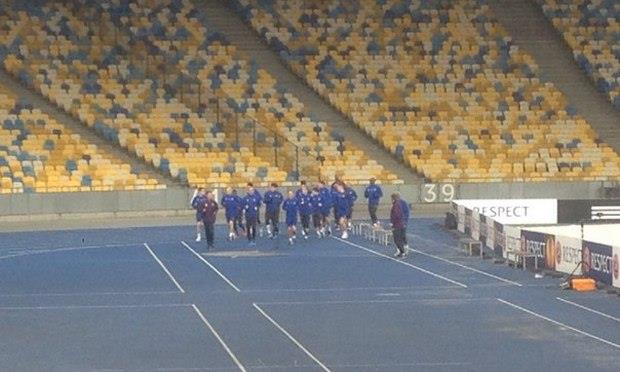 Эвертон удивил: еще с утра сообщалось, что тренерский штаб решил провести тренировку на Олимпийском, несмотря на то, что газон за день до матча будет накрыт. В отличие от Аякса, который неделю назад тренировался на стадионе Банникова, англичане решили, что лучше опробовать Олимпийский — не газон, так хоть беговые дорожки.