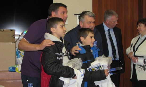 Вот уже несколько лет существует проект британского благотворительного фонда «Линия жизни детей Чернобыля», благодаря которому украинские дети, пострадавшие от аварии на ЧАЭС, оздоравливаются в Великобритании, их принимают в английских семьях. Ездили в далекую страну и дети из Бородянского района – среди тех, кто их принимал, и семья одного из ответственных работников клуба Эвертон. Поэтому в день, когда ливерпульский клуб прибыл в Киев, дети из Нового Корогода получили необычное приглашение – навестить команду в фешенебельном столичном отеле.