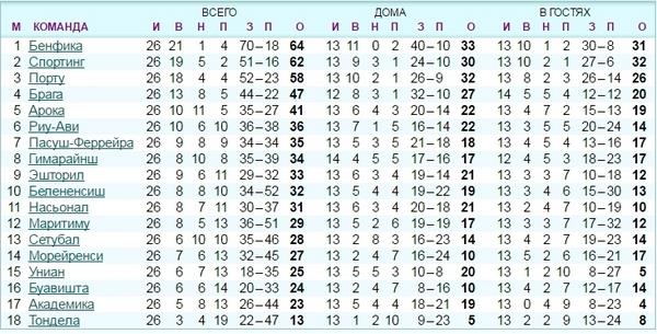 - Третье место по пропущенным мячам — 22 в 26 матчах. Выше только Бенфика и Спортинг.