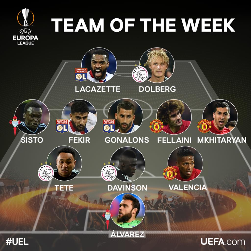 В символическую сборную вошли по три представителя Аякса, Манчестер Юнайтед и Лиона, а также два игрока из Сельты.
