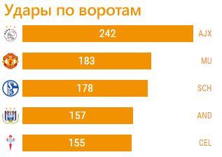 Финалист ЛЕ Аякс чаще всех бил по воротам — 242 удара. Вторая команда Нидерландов больше всех била и в створ ворот, и мимо, и блокировали их удары чаще чем у остальных.
