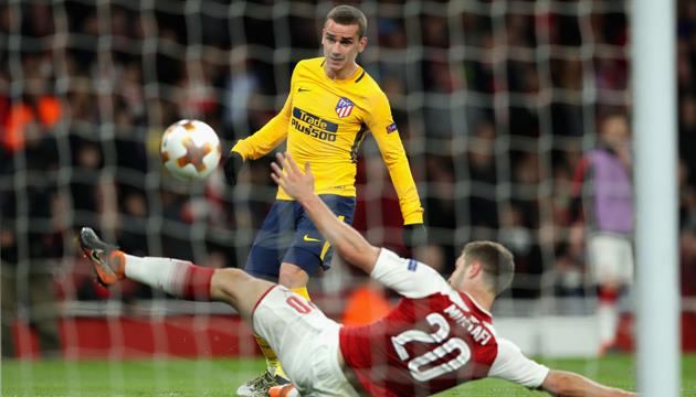 Путевку в финал Атлетико разыгрывал с лондонским Арсеналом, и досталась она команде Диего Симеоне совсем нелегко. Во время визита в Лондон гости остались в меньшинстве уже на 10-й минуте игры, когда вторую желтую карточку получил защитник Шиме Врсалько, а вслед за ним за споры с арбитром на трибуны отправился и главный тренер Диего Симеоне. После этого Арсенал по всем статьям превосходил оппонента, раз за разом угрожая воротам Яна Облака, но тот стеной стоял на пути атак соперника, а один раз на помощь ему пришла штанга ворот. На 61-й минуте словак, все же, капитулировал после удара Александра Ляказетта головой. Впрочем, из 28 ударов "канониров" лишь этот завершился взятием ворот, а Атлетико после него не то что не посыпался, но и нашел в себе силы отыграться. Лоран Косельни комически неудачно вынес мяч в борьбе с Антуаном Гризманном, а Шкодран Мустафи упал на ровном месте, после чего француз мастерски завершил атаку, забив важнейший выездной гол.