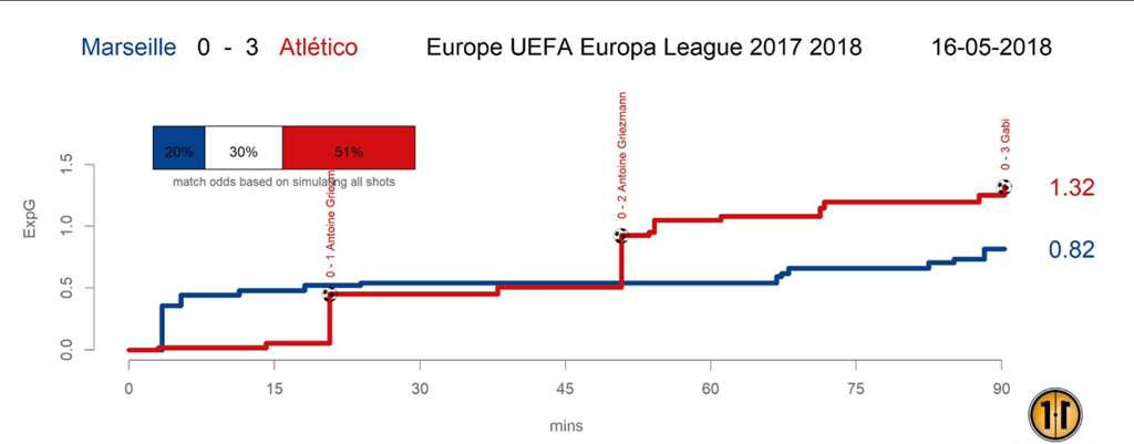 Первое: в первые 20 минут Марсель создал гораздо больше, чем за весь оставшийся матч. Можно даже сделать вывод, что после этого провансальцы ничего не показали в принципы. Но из этого отрезка они не извлекли никакой выгоды, а Атлетико создал гол практически из первого своего момента (это все про фразу Пепа).