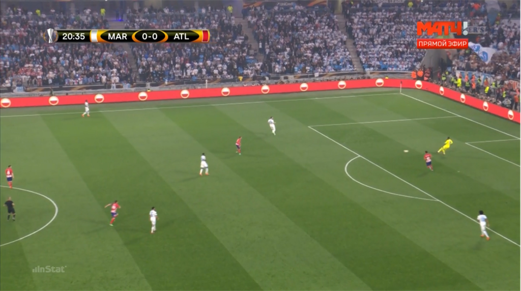 Атлетико мастерски разбил эту схему. При аутах Марселя мадридцы играли с визави максимально близко (смотреть второй гол) и практически не давали шансов развернуться и нормально овладеть мячом.