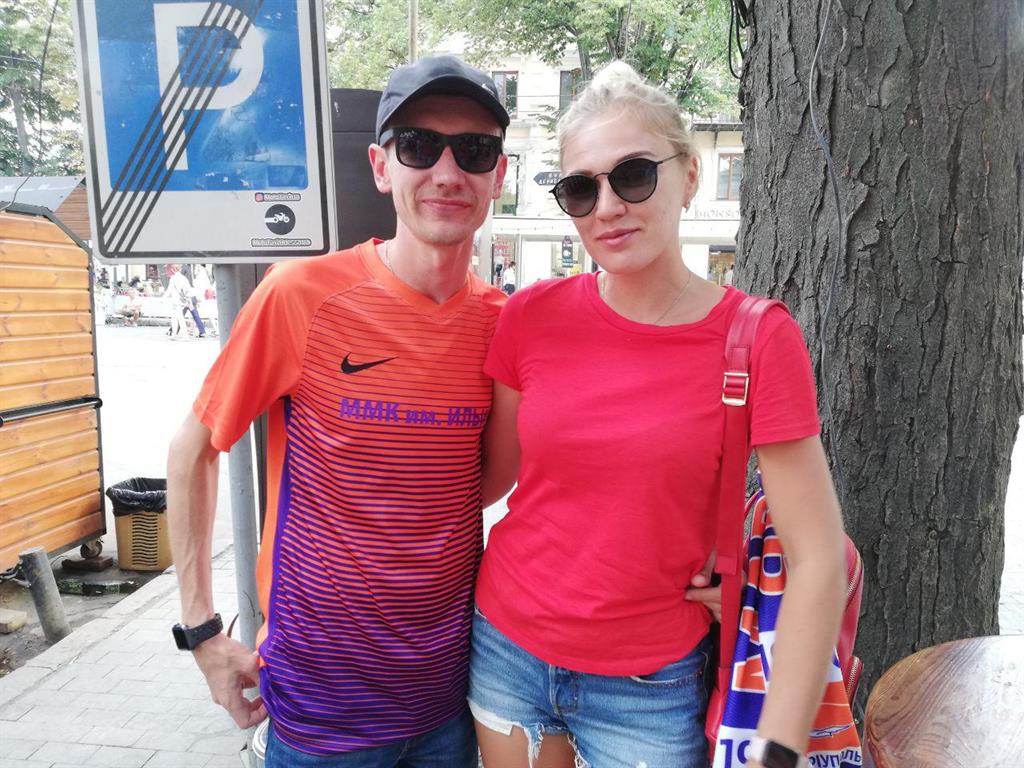 Первым свидетельством приближающегося матча стала пара из Мариуполя, которая прибыла специально на игру и верит в победу родной команды.