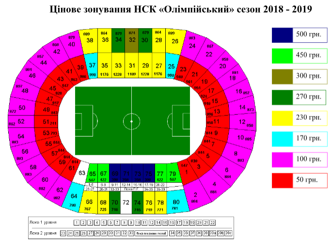 Билеты будут продаваться по тем же ценам, что и на УПЛ. Цены варьируются от 50 до 500 грн.