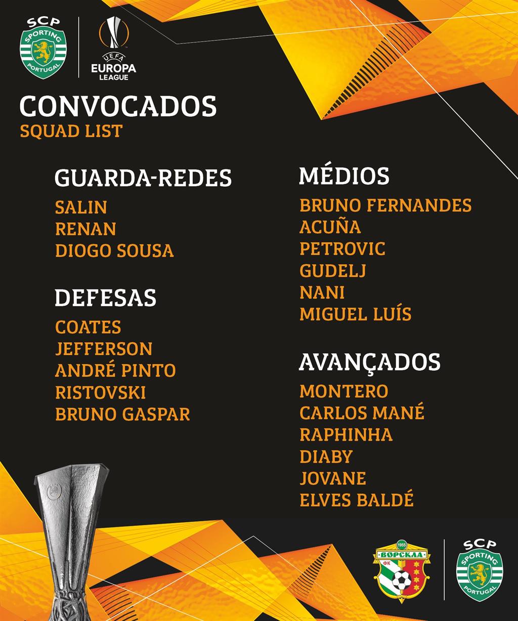 Главный тренер Спортинга Жозе Пезейру внес в заявку на матч второго тура группового раунда Лиги Европы против Ворсклы 20 футболистов.