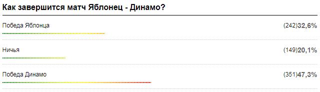 Football.ua спрашивал у своих читателей, кого они считают фаворитом в матче группового этапа Лиги Европы между Яблонцем и Динамо.