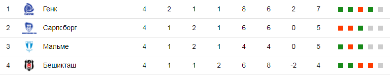 Ничья в игре с Бешикташем позволила Генку с семью очками возглавить квартет I. Турецкий клуб опустился на четвертое место, имея в активе четыре балла.