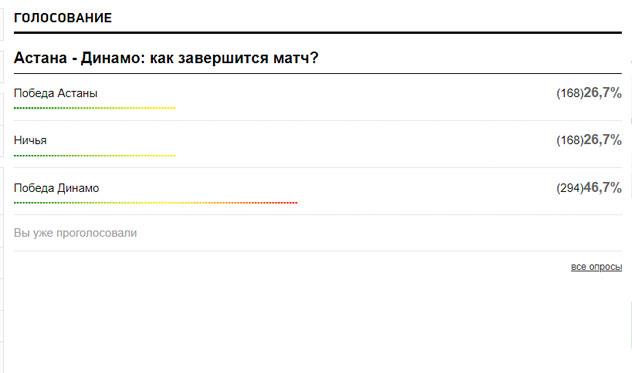 На победу Астаны ставят 26,7%, и ровно такое же количество людей (26,7%) ожидает от игры ничейного исхода.