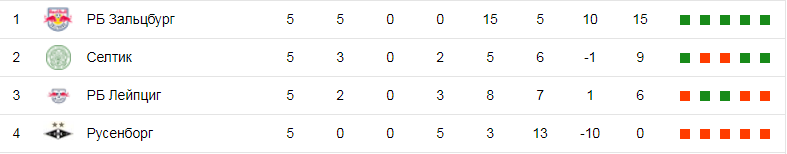 Зальцбург благодаря победе над Лейпцигом возглавил группу В с 15 очками. Немецкий клуб после пяти матчей идет на третьем месте — шесть баллов.