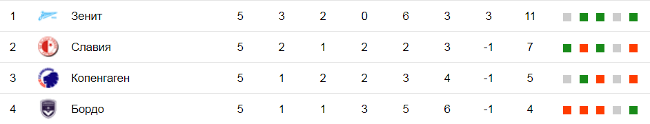 - Славии нужно играть вничью с Зенитом для выхода в 1/16. Однако в случае ничейного исхода матча Копенгаген — Бордо, чехов устроит и поражение.