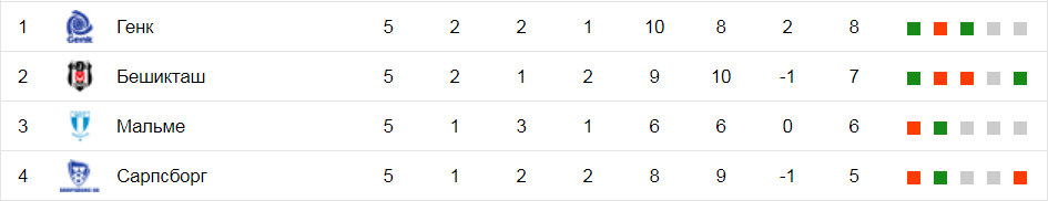 - Бешикташу хватит ничьей для выхода в плей-офф, если Генк проиграет Сарпсборгу, то турки будут первыми. Однако лишь в случае победы турки могут претендовать на первую строчку.