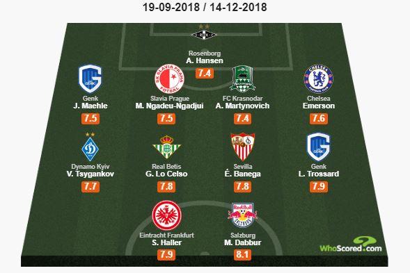 В ней попал и украинский футболист — Виктор Цыганков из Динамо. Его команда сумела занять первое место в турнирной таблице, а сам украинец сыграл в Лиге Европы 5 матчей, в которых забил 2 гола и отдал 3 голевые передачи. Благодаря своим действиям Цыганков получил среднюю оценку 7.68.