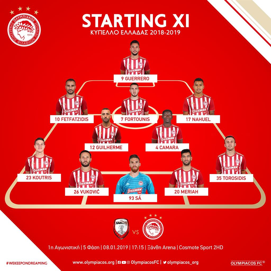 Олимпиакос: Са – Торосидис, Мерия, Вукович, Кутрис – Камара (Натхо, 68), Гильерме – Нахуэль, Фортунис, Фетфацидис (Масурас, 61) – Герреро (Кука, 75).