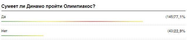 Ліга Європи 21 лютого 2019, 21:58 Пользователи Football.ua уверены, что Динамо пройдет Олимпиакос По версии посетителей Football.ua, киевляне пройдут в следующий раунд плей-офф Лиги Европы. 21 лютого 2019, 21:58 На НСК Олимпийский киевское Динамо проведет ответный матч 1/16 финала Лиги Европы против Олимпиакоса. После первого матча счет 2:2. Пользователи Football.ua считают, что команда Александра Хацкевича пройдет греческий барьер. На Football.ua будет доступна текстовая онлайн-трансляция матча Динамо — Олимпиакос. Василь Войтюк всі статті автора Facebook
