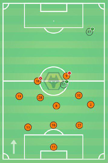 Среднее расположение игроков Вулверхэмптон в игре с Челси (1:1) в воскресенье.