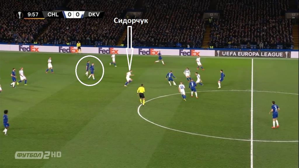 В данном случае Сидорчук побежал прессинговать Жоржиньо, оставив за спиной Педро и Ковачича.