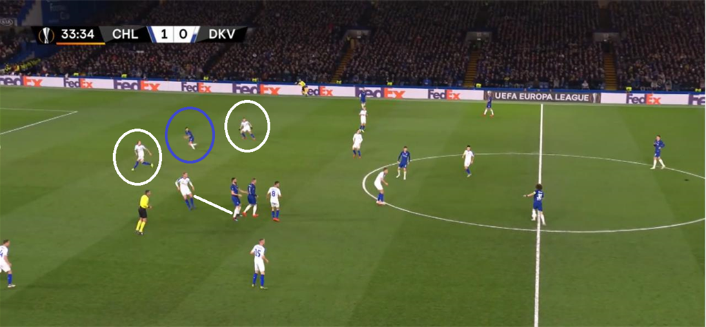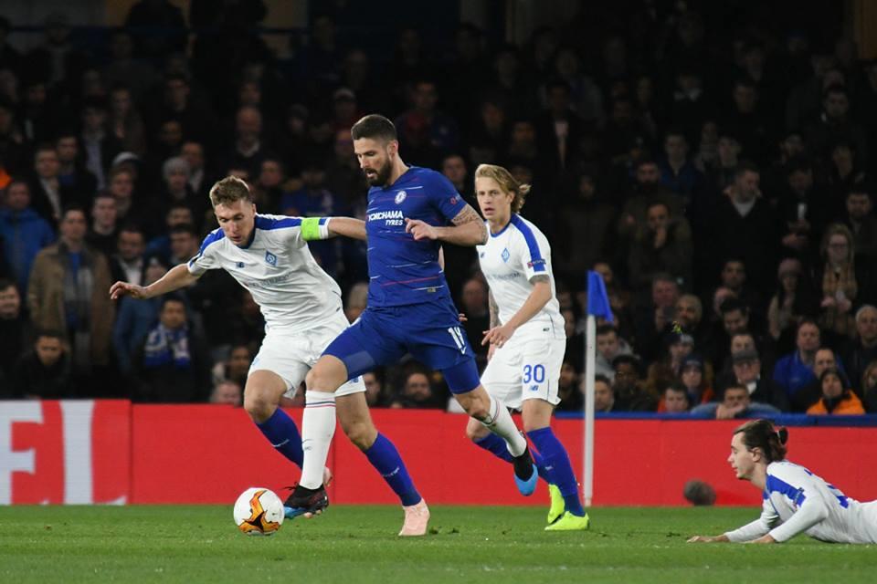 Игра без мяча Челси — это то, чего сейчас очень не хватает Динамо. В Лондоне команда Хацкевича попросту запуталась в перемещениях "синих". Одну из главных ролей в движении команды без мяча играет Оливье Жиру (когда выходит на поле). Француза можно считать скрытым MVP матча и речь не только о феноменальном пасе пяткой "между" Шабанову в моменте с первым голом.