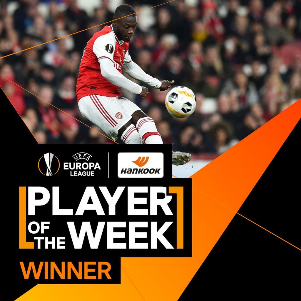 Официальный сайт УЕФА сообщил, что лучшим футболистом третьего тура группового раунда Лиги Европы был признан футболист лондонского Арсенала Николя Пепе.