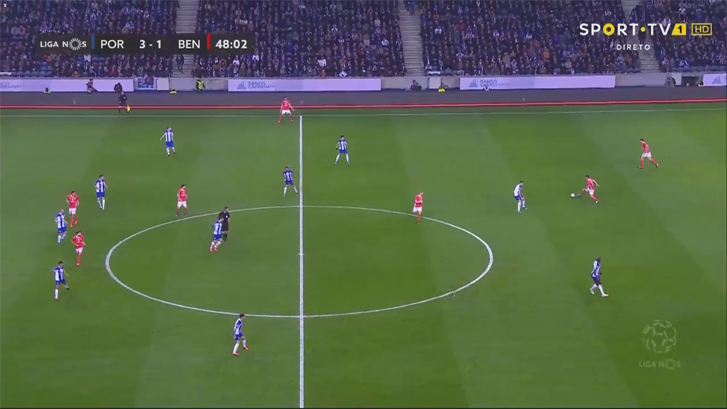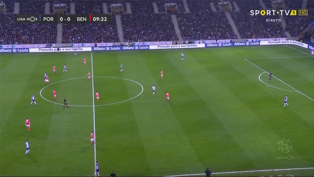 В матче с Порту "драконы" активно шли в отбор, не оставляя игрокам команды Лажи времени на типичный для них неторопливый розыгрыш. Особенно удачно это получалось именно на флангах, они буквально выдавливали игроков Бенфики за боковую, не позволяя продвижению.