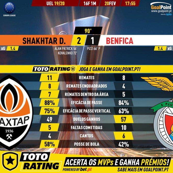 Бенфика никогда не проигрывала на этой стадии турнира – восемь побед и две ничьих, пять выходов дальше из пяти случаев – однако в Харькове "орлов" ждало поражение, предопределенное ошибкой Рубена Диаша.