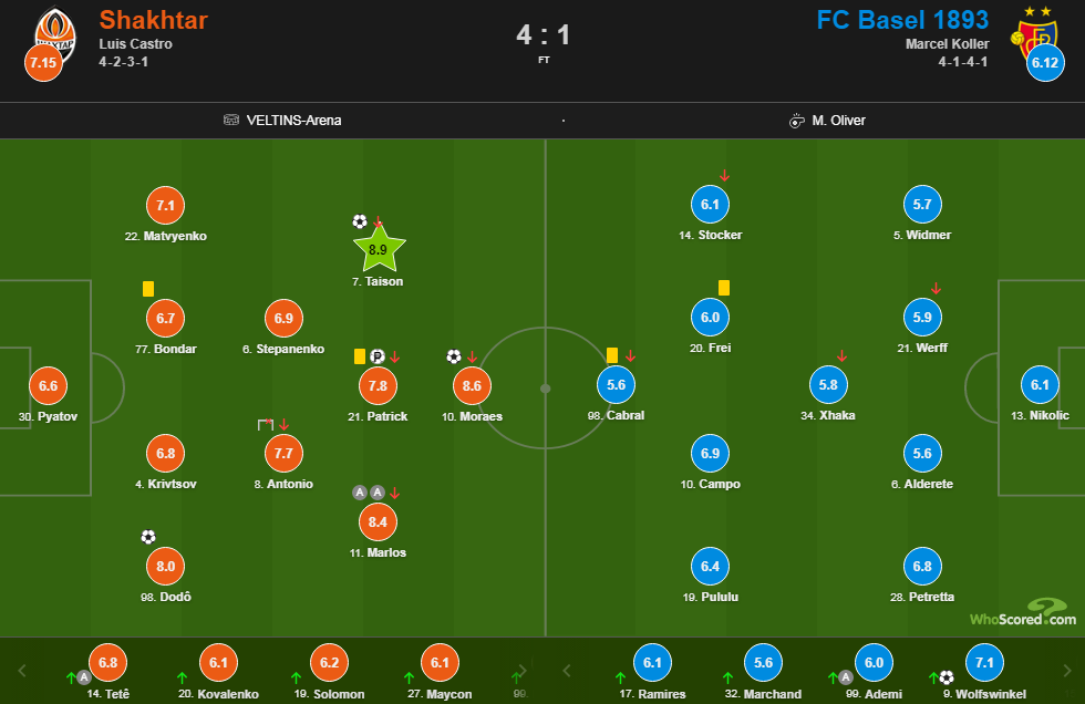 Полузащитник "горняков" Тайсон отличился одним из голов и помог своей команде победить со счетом 4:1. Бразильский хавбек получил оценку 8,9 от портала Whoscored и стал лучшим игроком матча.