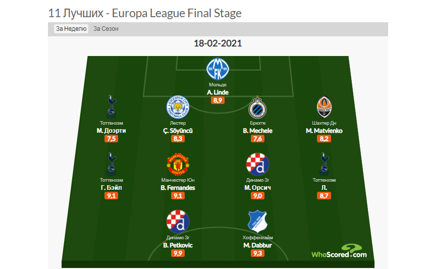 Защитник "горняков" Николай Матвиенко вошел в команду недели Лиги Европы по версии портала WhoScored.