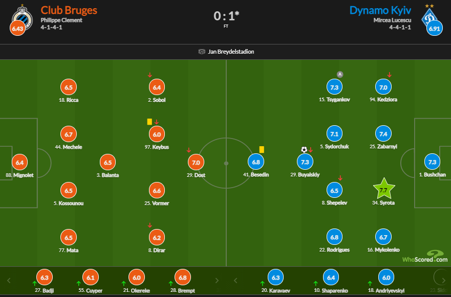 Статистический портал Whoscored традиционно оценил участников поединка. Так наивысший балл получил защитник Динамо Александр Сирота — 7,7.