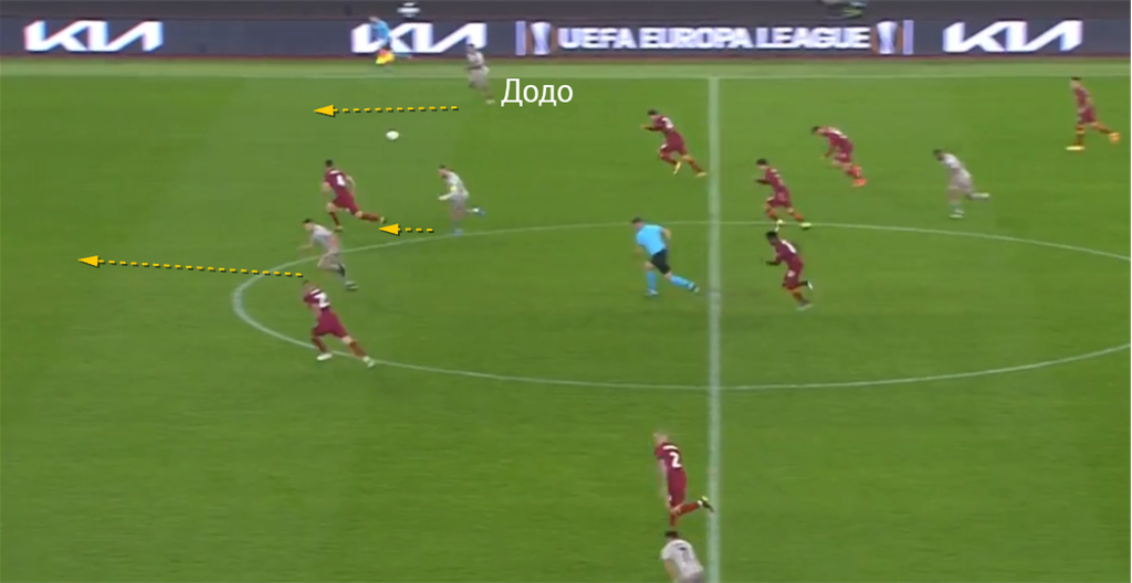 Но все-таки говорить о том, что Шахтер был полностью нейтрализован таким образом тоже неправильно. Рома действовала не безгрешно. "Волки" старались постоянно заставлять игроков Шахтера принимать мяч спиной к воротам, но это не всегда у подопечных Фонсеки получалось. Иногда футболистам Каштру все-таки удавалось использовать свободные зоны, которые образовывались, и выбегать в хорошие атаки.