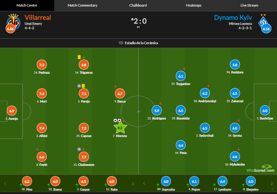 Самым значимым игроком матча стал нападающий Вильярреала Жерар Морено, который заработал 8,2 балла.
