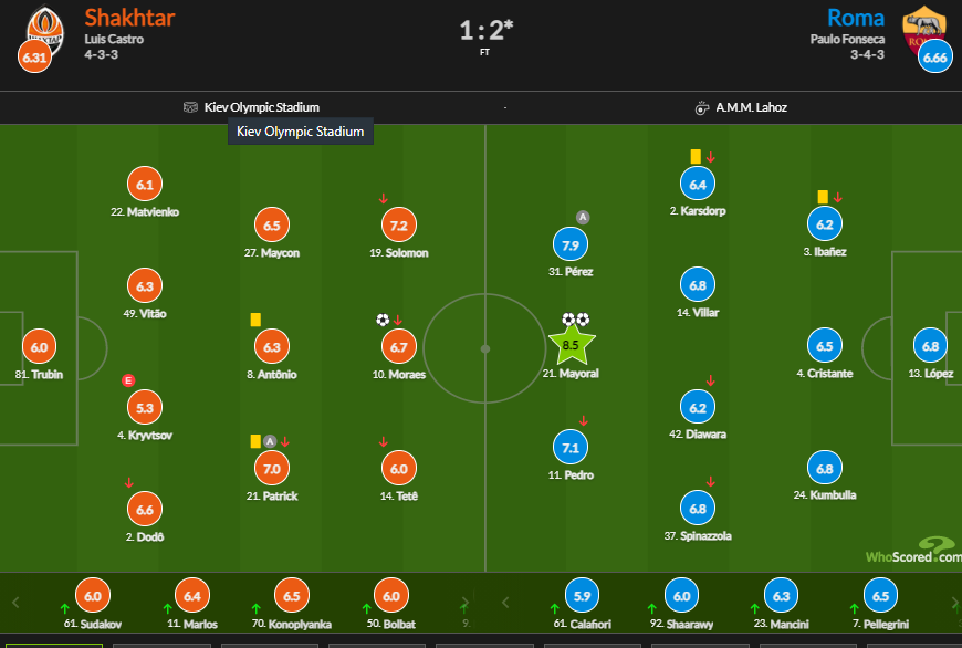 Титул лучше игрока матча же забрал нападающий Ромы Борха Майораль, который заработал 8,5 балла.