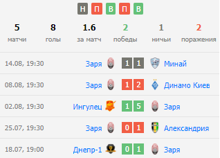 Форма команд за последние 5 матчей