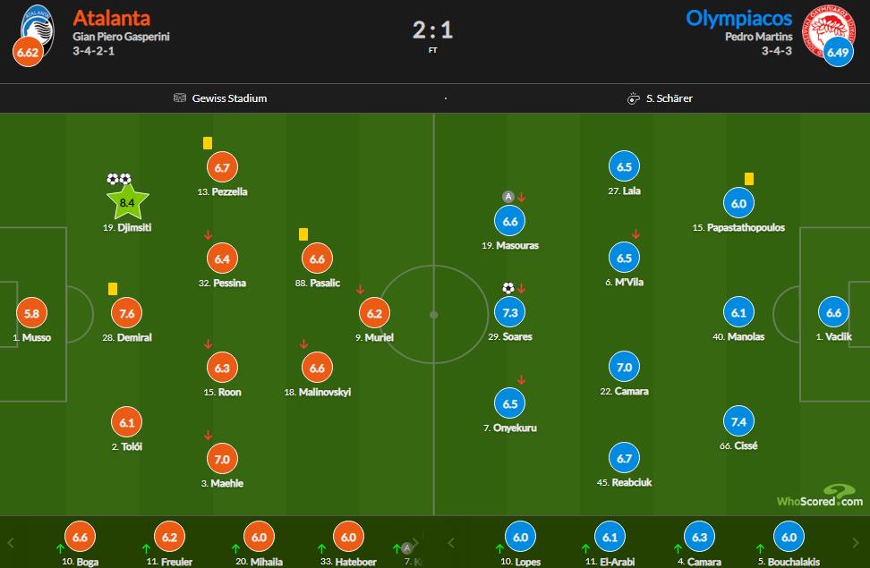 В рамках 1/16 финала Лиги Европы Аталанта с Русланом Малиновским в составе принимала на своем поле греческий Олимпиакос и одержала победу (2:1).