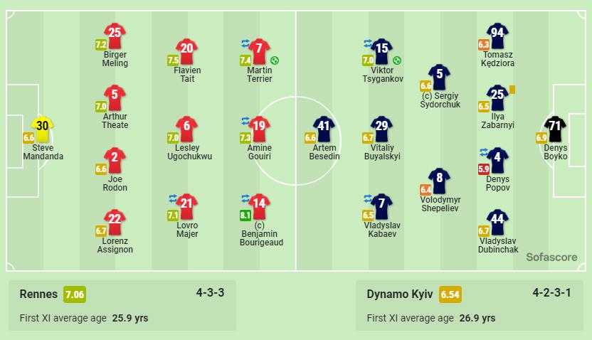 Ще один портал SofaScore виставив практично ідентичні оцінки. Найкраща у Динамо у Циганкова – 7 балів, а найгірша у Попова – 5,9 балів. У складі Ренна найкраща у Бурежо – 8,1 бала.
