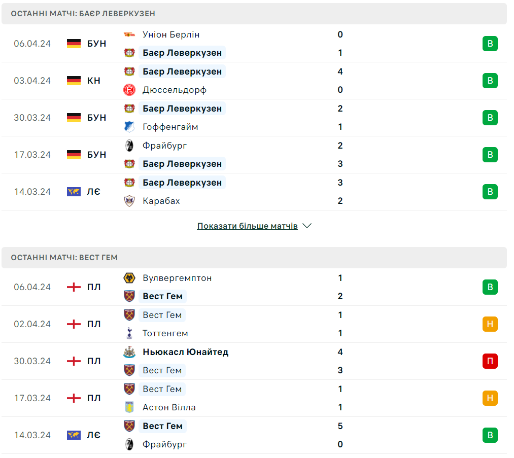 Баєр на попередній стадії з великими труднощами здолав Карабах у двоматчевому протистоянні. Фактично, Патрик Шик затягнув на собі леверкузенців у чвертьфінал, забивши три голи вже в компенсований час. Вест Гем, своєю чергою, розгромив Фрайбург 5:0 після мінімальної поразки на виїзді та крокує за другою єврокубковою звитягою поспіль — після тріумфу в торішньому розіграші Ліги конференцій.