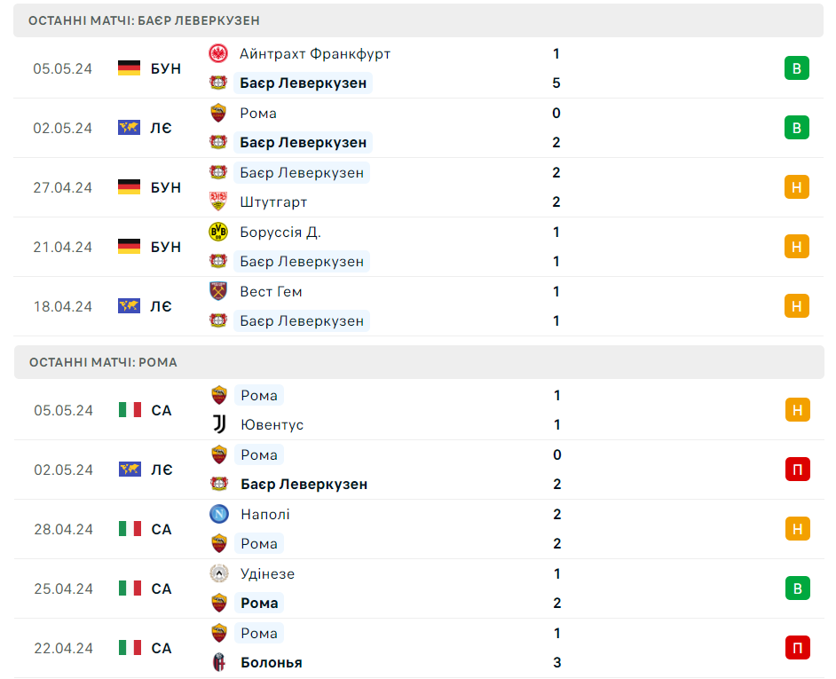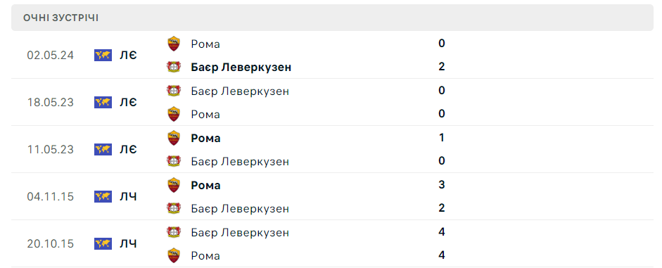 У рамках півфінального матчу-відповіді Ліги Європи УЄФА на нас чекає протистояння між леверкузенським Баєром та римською Ромою, яке пройде на німецькому стадіоні Бай-Арена.
