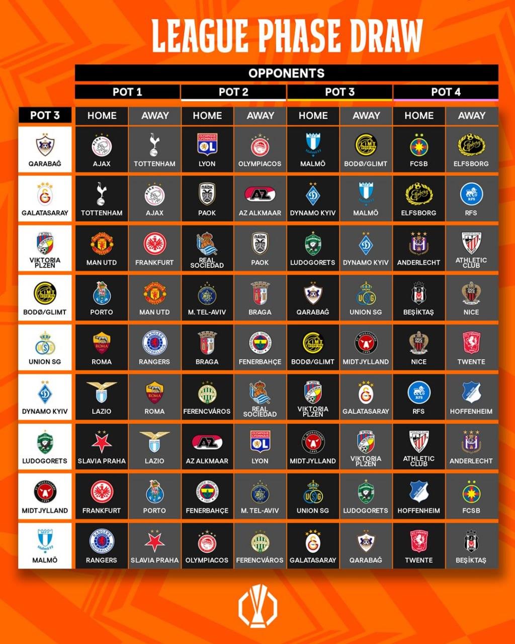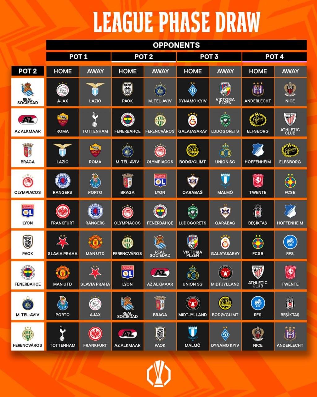 Сьогодні в Монако пройшло жеребкування загального етапу Ліги Європи. У турнірі виступатимуть 36 клубів. Вони розподілені по чотирьох кошиках.
