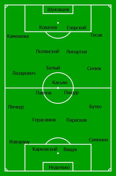 повреждения Карковский. Пока травму залечивает Гринченко, румынский универсал Изворану будет подменять его на левом фланге защиты. Предположим, что в центре поля будут действовать Гошкодеря и Герасимюк, впрочем, не исключено появление здесь Дмитрия Зозули, перешедшего из ФК Львов. Есть в распоряжении Кварцяного и румын Параскив, но ему наставник не всегда доверяет. В атаке у Волыни, скорее всего, выйдут два мощных форварда – Павлов и Пищур, так как арендованный у Металлиста Лысенко вчера играл за дубль.