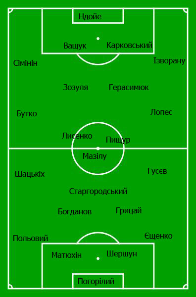 Віталій Неділько не найкращим чином зіграв проти Зорі, тому цілком ймовірне поверення до основи "кращого воротаря світу" Ісса Ндойе. В обороні вибір виконавців не надто великий, тому максимальною може бути заміна Сергія Сімініна на Борнела Буту. Олег Герасимюк через хворобу не зміг зіграти минулого тижня, досі травмований Саша Стевіч, а Соріну Парасківу не довіряє Кварцяний. Тому можливий вихід того ж варіанту з Гошкодерею та Зозулею, хоча перехворівший Герасимюк може витіснити одного з них в запас, а Гошкодерю на лівий фланг. Інший кандидат зіграти там бразилець Рамон Лопес.