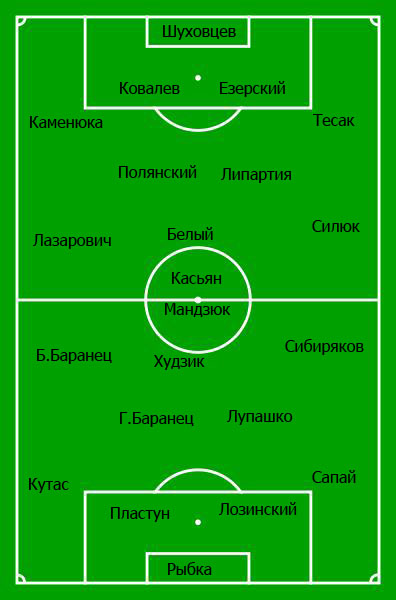 Что касается ориентировочных составов, то у формальных хозяев поля, несмотря на немалое количество новичков, пополнивших их состав в межсезонье, все должно быть стабильно. Казалось бы, не лучшим образом провели матч с Ильичевцем крайние полузащитники Лазарович и Силюк, что, возможно, дало бы шанс Хомченовскому и Цакичу, но оба этих 20-летних хавбека вчера играли за дубль. Хотя и были нарекания по действиям Липартии в последнем туре, но пока не наберет форму Емельянов грузинскому легионеру вряд ли стоит переживать о месте в старте. Фомин еще не готов выходить с первых минут, а Мадоу необходимо время для адаптации, поэтому вновь ожидаем Касьяна на острие атаки.
