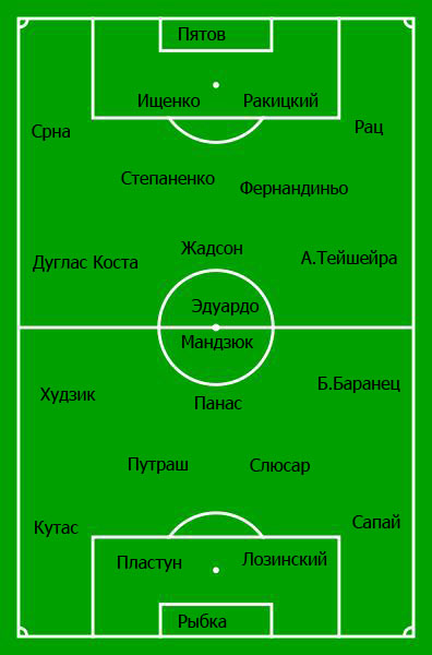 Виллиана на левом фланге полузащиты заменит Алекс Тейшейра, а на острие атак вместо Луиса Адриано сыграет Эдуардо.